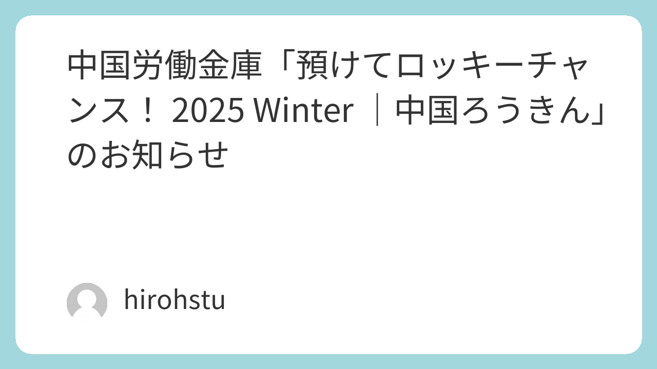 中国労働金庫「預けてロッキーチャンス! 2025 Winter |中国ろうきん」のお知らせ